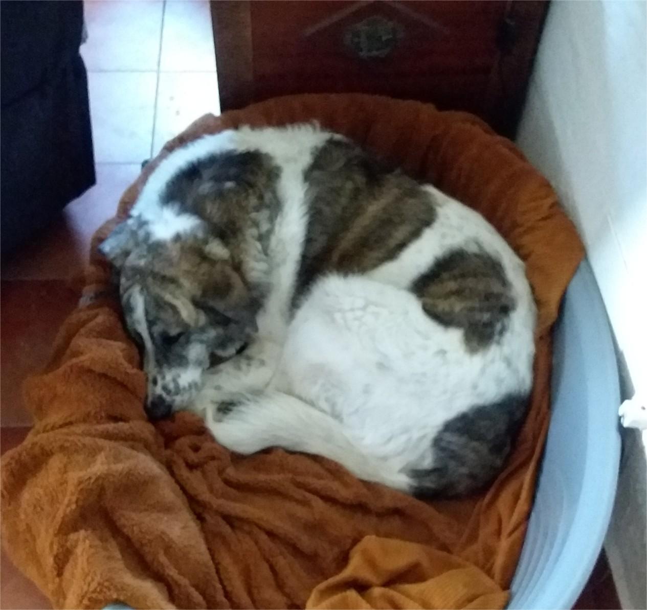 When Norma first arrived in her previous home, she was very quiet and timid, having spent time in kennels before being adopted. With patience, stability, and the companionship of Lily, she soon grew in confidence and settled into family life. Norma enjoys going out for walks and, while she may be a little unsure at first, she relaxes after a few minutes and walks well on the lead. She does not enjoy very long walks and can be a little stiff in her legs at times, often appearing older than her years, so she is happiest with a gentler pace of life.