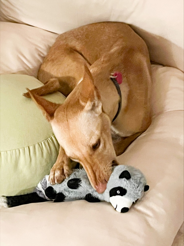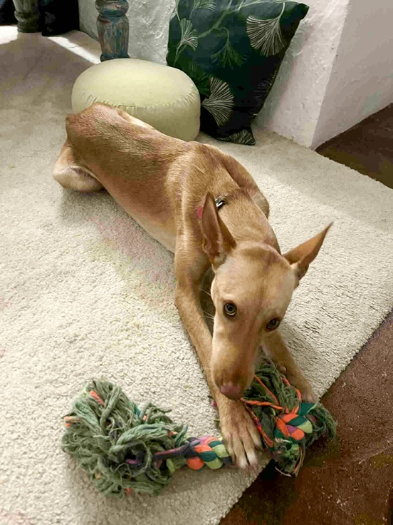 Bambi (was Scout) is a beautiful cinnamon coloured Podenco.