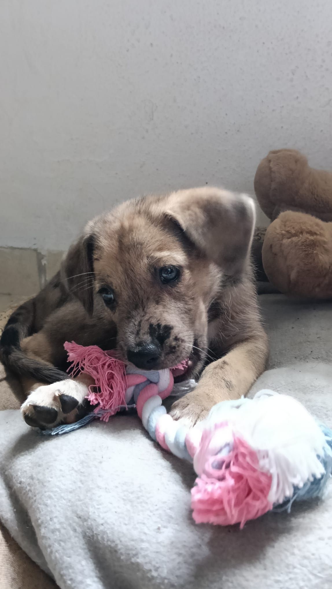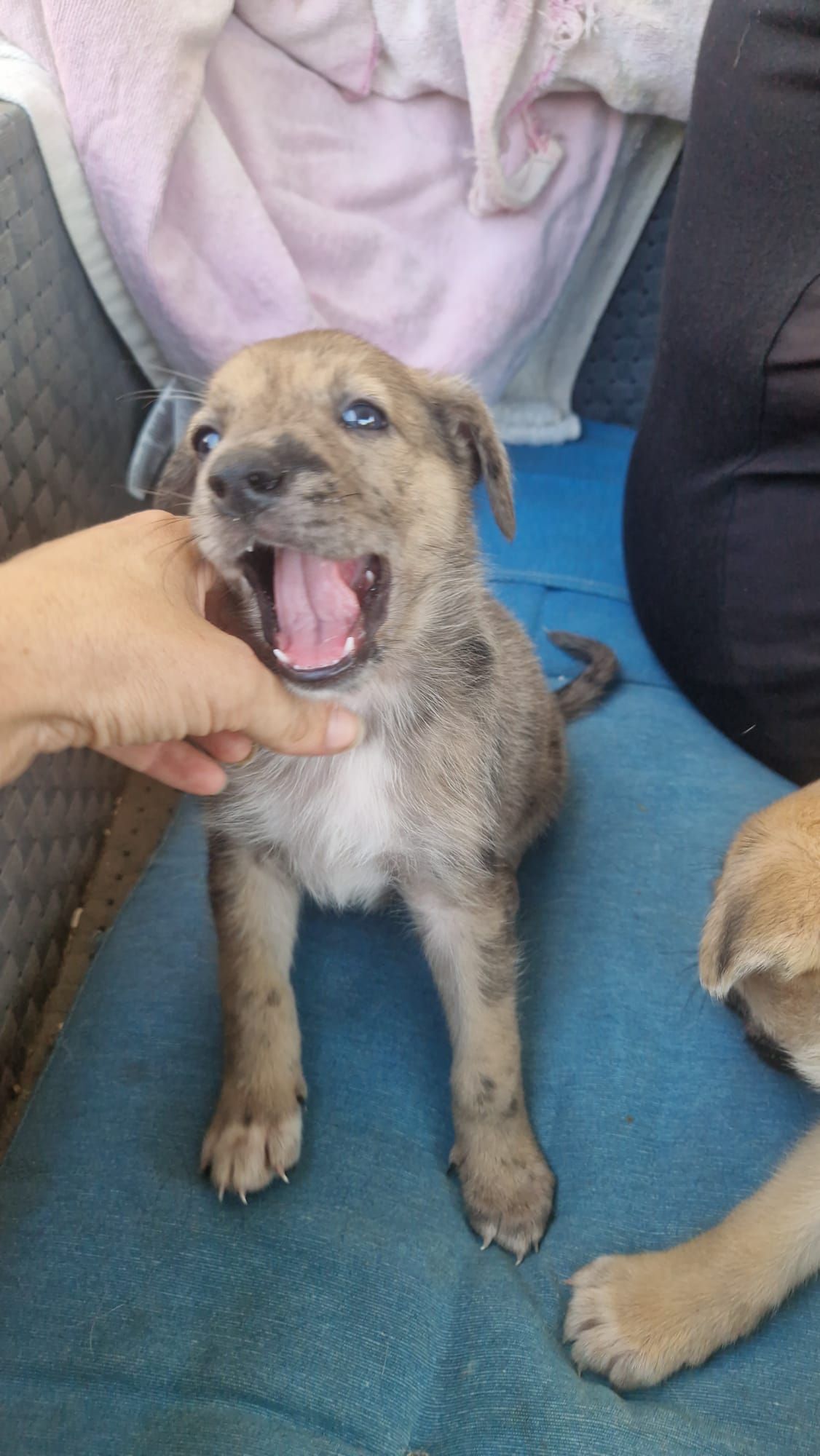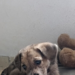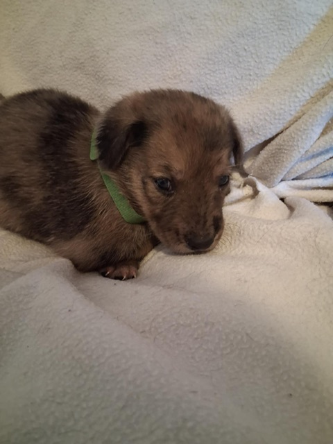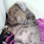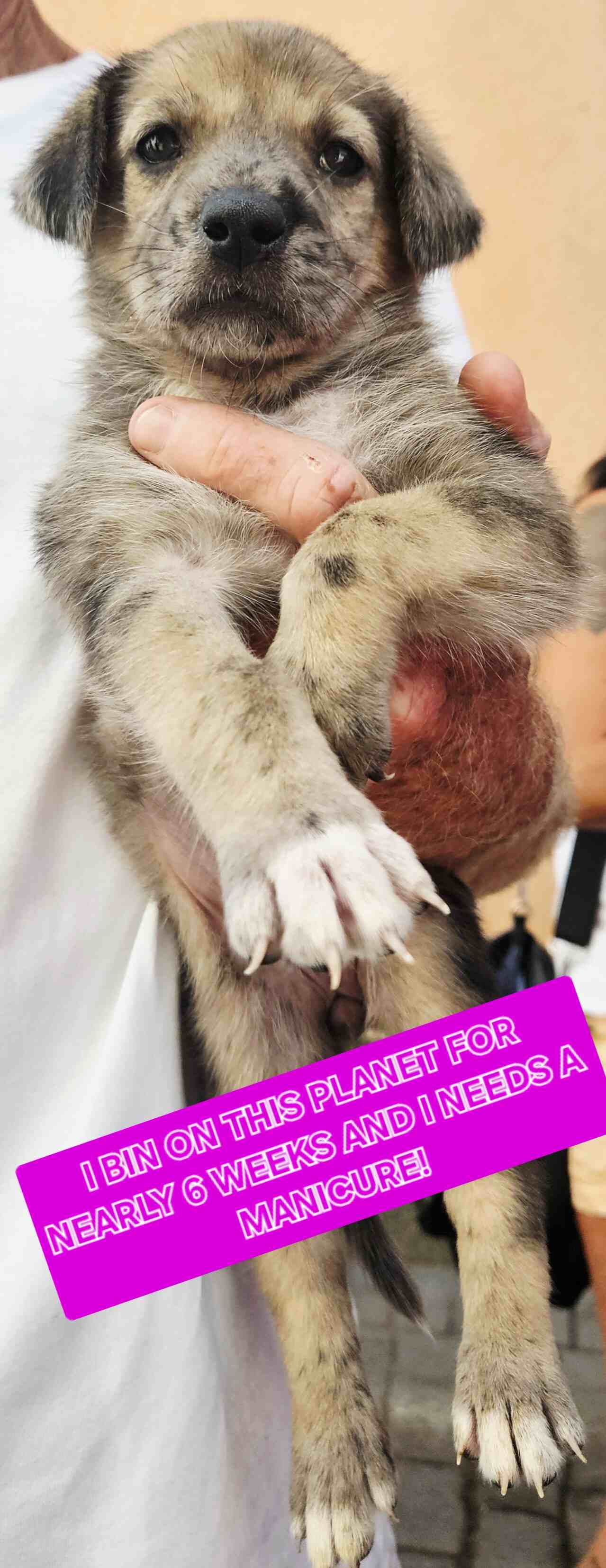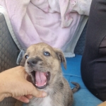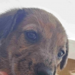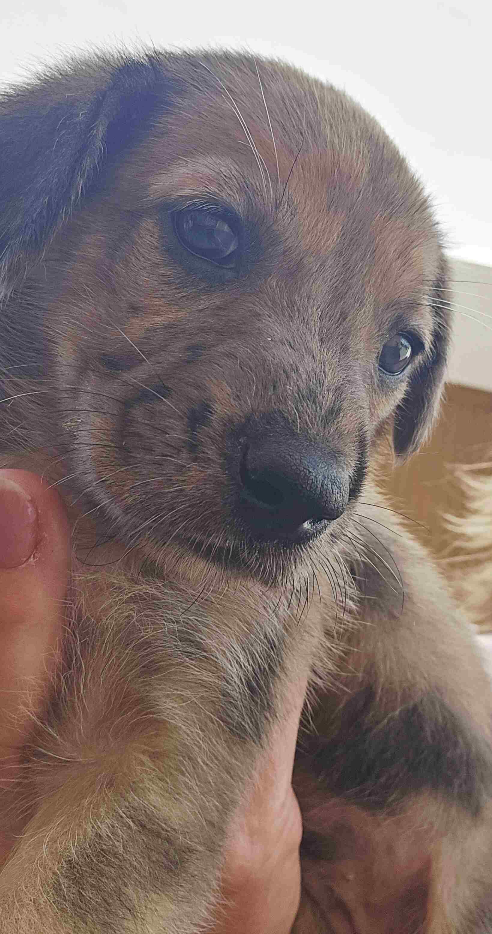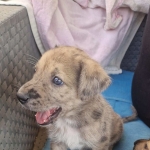 Click on an image to enlarge the picture or play the videoOne of 10 pups born in foster home to Goldie. Goldie surprised us with 10 pups on 21 June. Goldie is an amazing mum and pups are thriving. Weaning has begun and, wow they’re a greedy bunch.