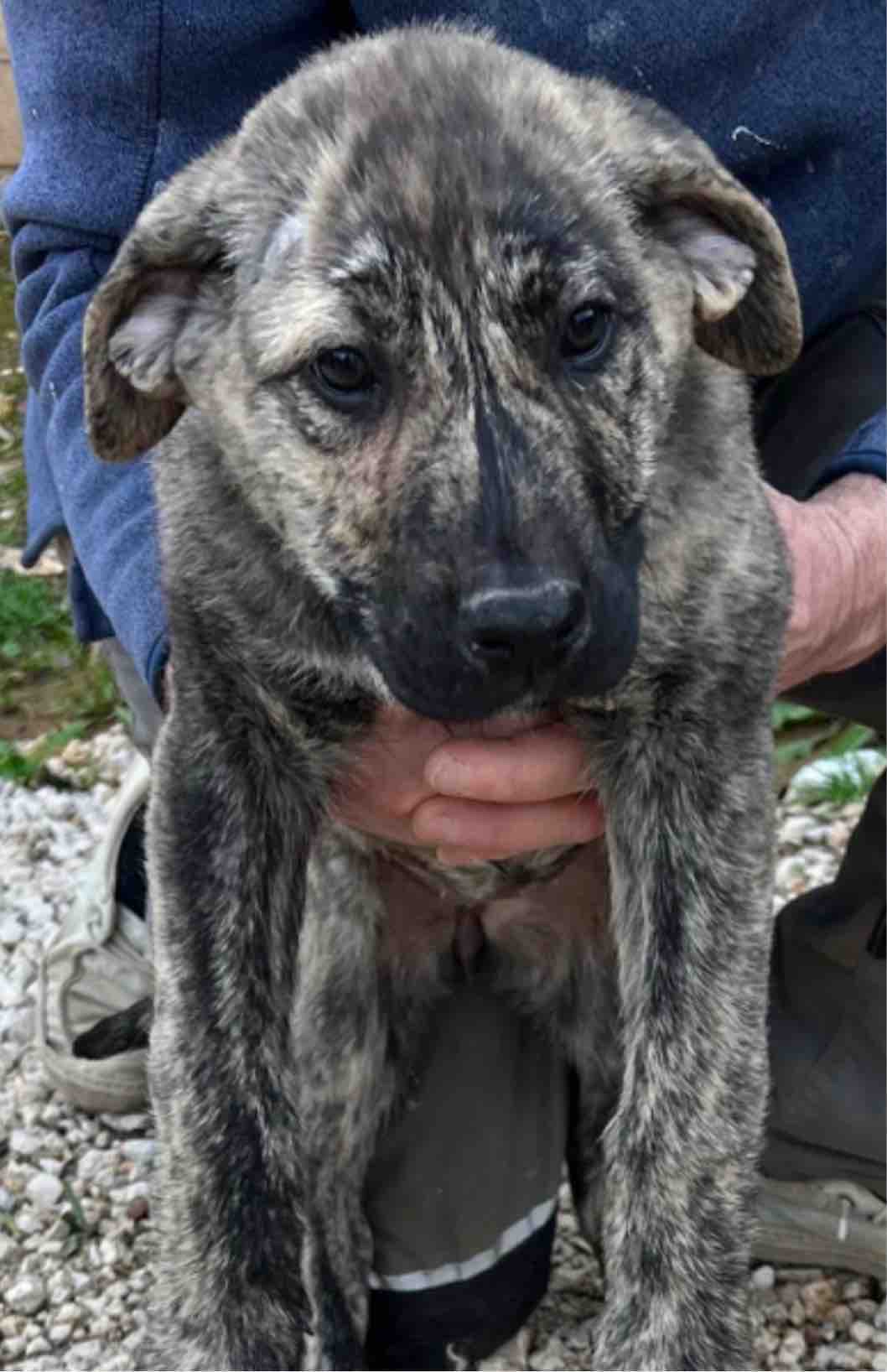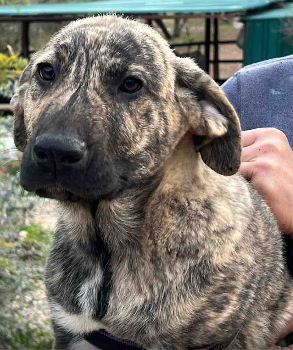 Of the three siblings rescued, Brin is the quietest — but don’t let that fool you. She’s a very happy puppy who loves to play, enjoys her toys, and absolutely adores cuddles. True to the Mastin breed, she has a wonderfully calm and balanced temperament, making her a joy to have around.